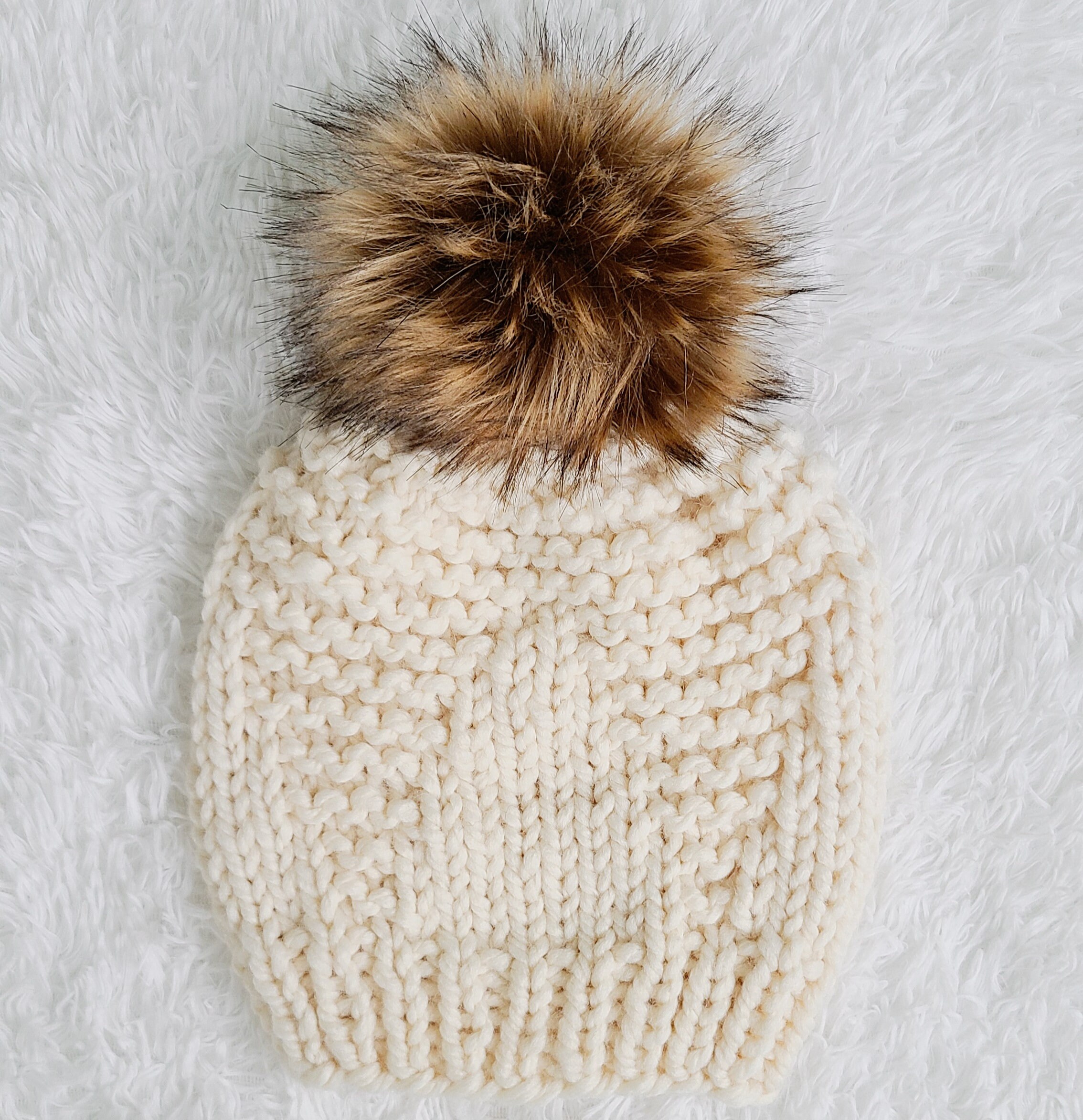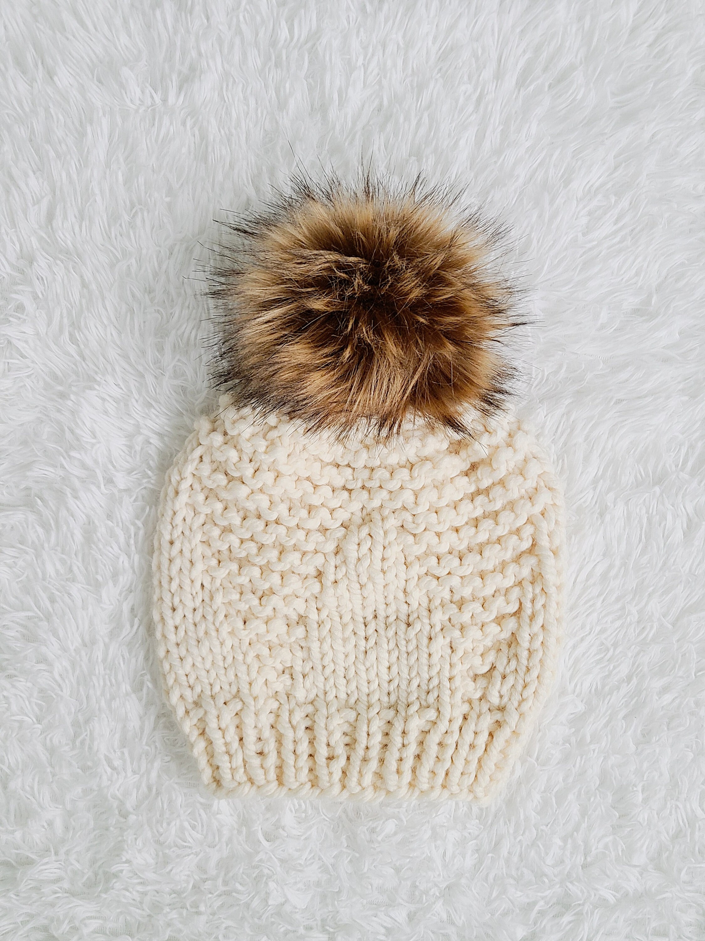 Each Rangeley Hat is made from a soft wool blend yarn that makes it warm and cozy. It's topped with a light-weight removable faux fur pom pom to make caring for your hat easier.